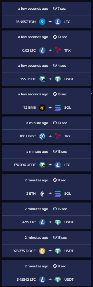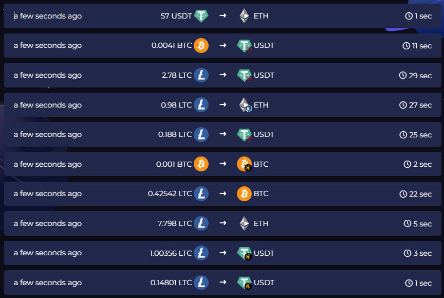 No registration and no need to share your personal details. We don't hold your funds, all exchanges take place instantly in fully automatic mode.
